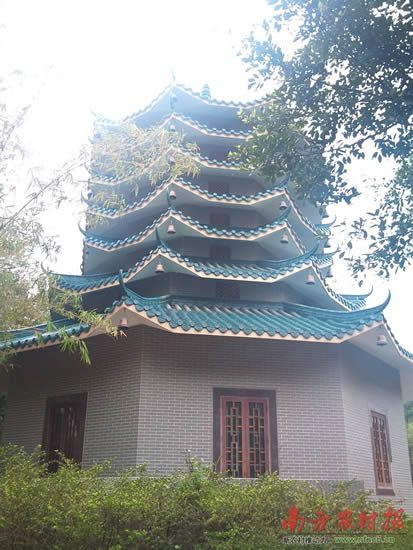 村民说,这座小山本是龙潮村民去世之后的安葬之处。龙潮村成了城中村后,按照规定,其余村民家的墓地都已迁往别处,只有梁杨辉母亲之墓还留在原地,“这座宝塔就建在梁母的墓地之上”。