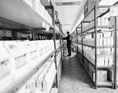 4月22日,北京新发地一家大型食品添加剂超市的工作人员在整理货架。新华社发
