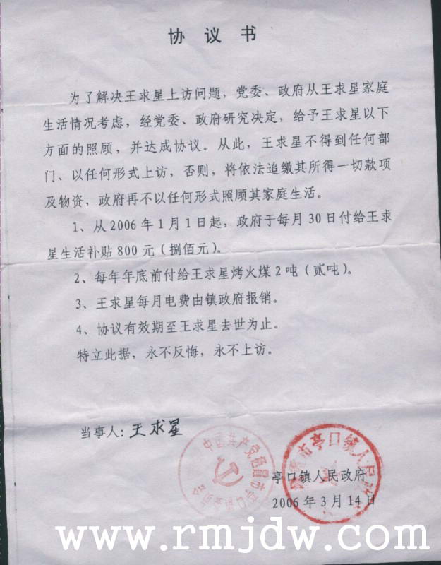 躺在床上的王求星想:我不能白白饿死,死了没有人可怜,死了也正是腐败官员所希望的。我的问题一天不解决,我就要一天告下去,不能便宜了他们。为了抗争,为了死去的父母、为了老婆、为了孩子,我要活下去。