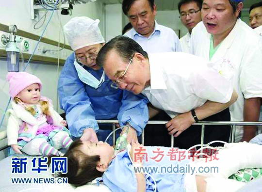 昨日,国务院总理温家宝前往医院探望小伊伊。新华网