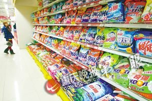 超市内市民选购洗衣粉 重庆晚报记者 任君 摄 下月初开始,市民购买洗涤类日化用品要多掏腰包了宝洁、联合利华、立白、纳爱斯四大日化品牌将对洗衣粉、洗衣液、洗洁精、沐浴露、