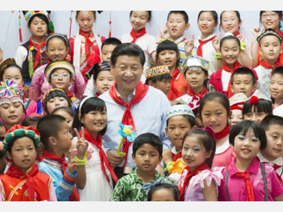 2013年5月29日,六一儿童节前夕,习近平作为“大朋友”出现在北京市少年宫参加“快乐童年放飞希望”主题队日活动。