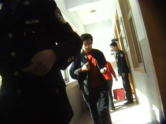 罪犯李新华试图冲破民警的警戒线殴打采访的记者。