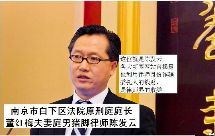 南京白下区法院董红梅夫妻庭真面目:在董红梅当刑庭庭长、陈发云当广电法律顾问的几年里,董红梅领导的刑事审判庭审理判决了南京广电集团十几起承包贪污案”,以上案件均由陈发云出材料,董红梅指使下属判决。