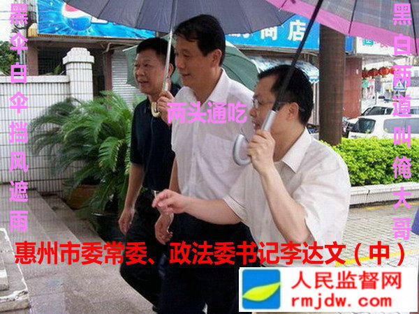 人民监督网讯:(记者 朱瑞峰 广东电)政法委书记是中共统一领导政法机关的最高领导,肩负保一方平安和司法公正的重大责任。然而,广东省惠州市委常委、政法委书记李达文(副厅级)却成了“黑贪”大哥大。
