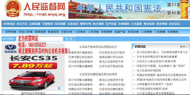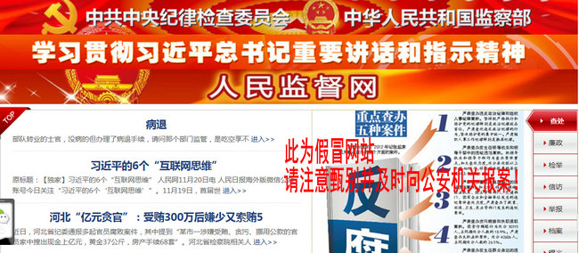 日前,接到网民民投诉,有人制作假冒的人民监督网,冒充人民监督网工作人员,骗取钱财。网民提供的假冒人民监督网的信息如下: