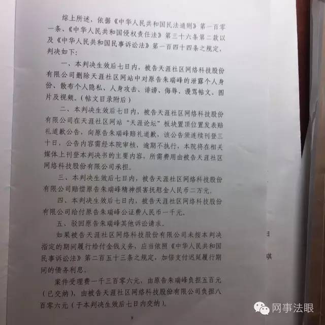 网友发帖被判赔 天涯社区摊大事_人民监督网