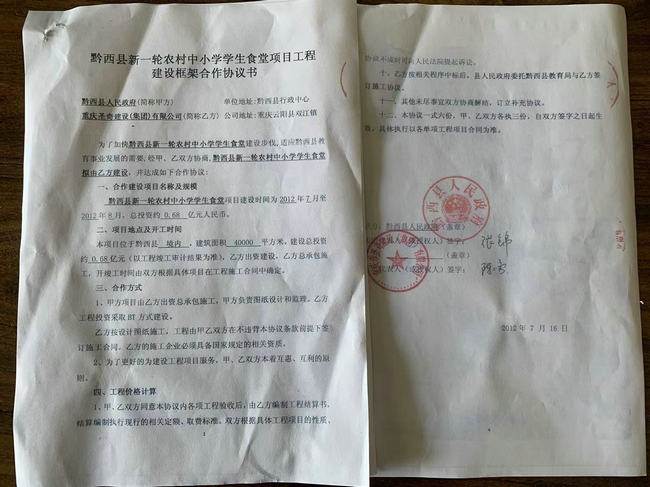 图:黔西市人民政府与重庆圣奇建设(集团)有限公司签约的学生食堂框架协议